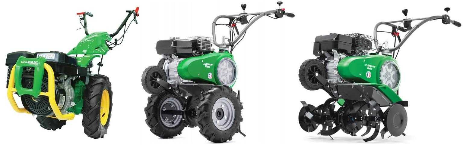 Линейка оборудования Кайман, предназначенного для обработки земельных участков, включает более 30 модификаций техники. Культиватор Caiman создан для обработки целинных почв на приусадебных участках. Существует оборудование с двигателями повышенного объема и валами отбора мощности для привода навесных сельскохозяйственных машин.