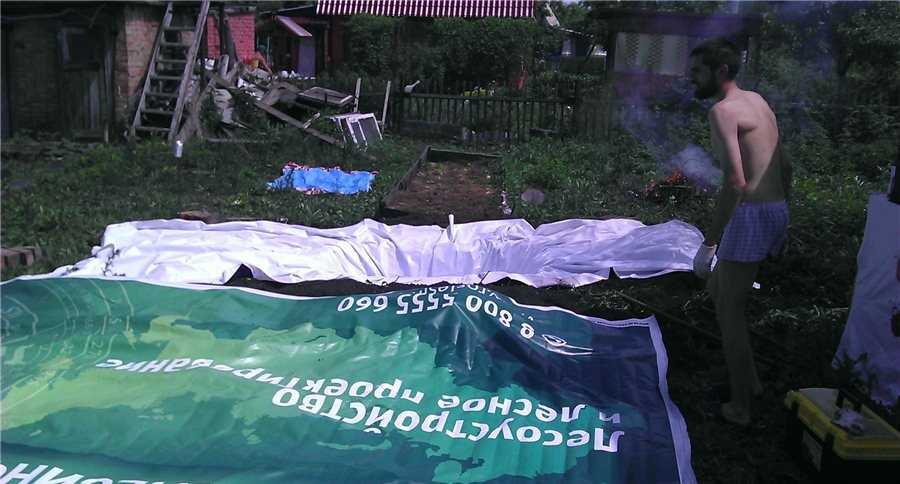 Итак, вооружившись баннером, копаем котлован, который по размеру значительно меньше полотна.