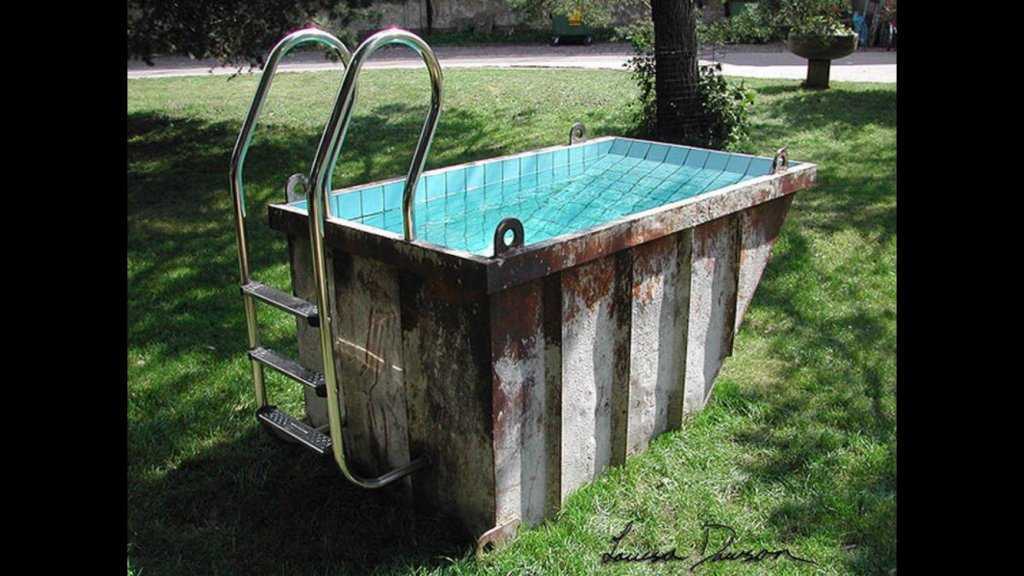 Вот, кстати, несколько дачных бассейнов из подручных материалов: ковш от экскаватора и большущая шина.
