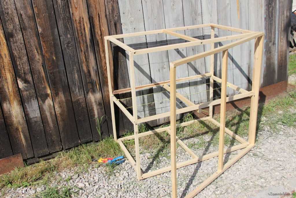 - Нарезать деревянные бруски по сделанным замерам, соединить их между собой при помощи саморезов. Каркас готов.