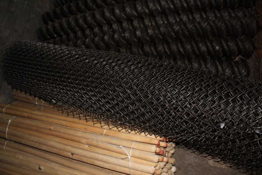 Самыми дешёвыми являются деревянные столбы, но они и наименее долговечные. На столбы закрепляют крючки для навеса Рабицы. Установленные столбы должны быть выше сетки или равной с ней высоты. Для ограждений рекомендуется выбирать сетку с проволокой толщиной более 2 мм с антикоррозийным покрытием.