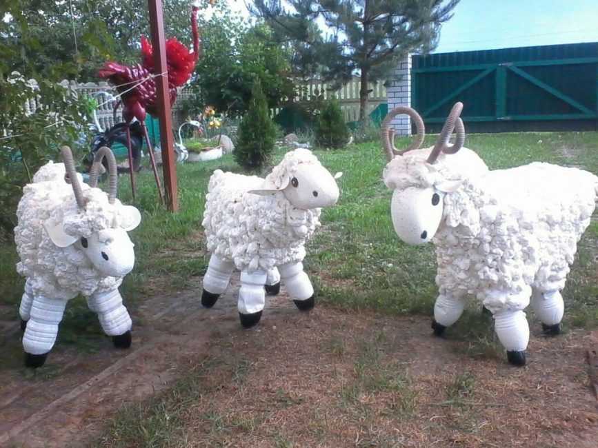 Из бутылок и колес можно сделать отличные клумбы и миксбордеры. А вот монтажная пена с металлической проволокой пригодится для изготовления более сложных архитектурных композиций. К примеру, можно сделать фигуру лесного зверя, или изготовить небольшую птицу.