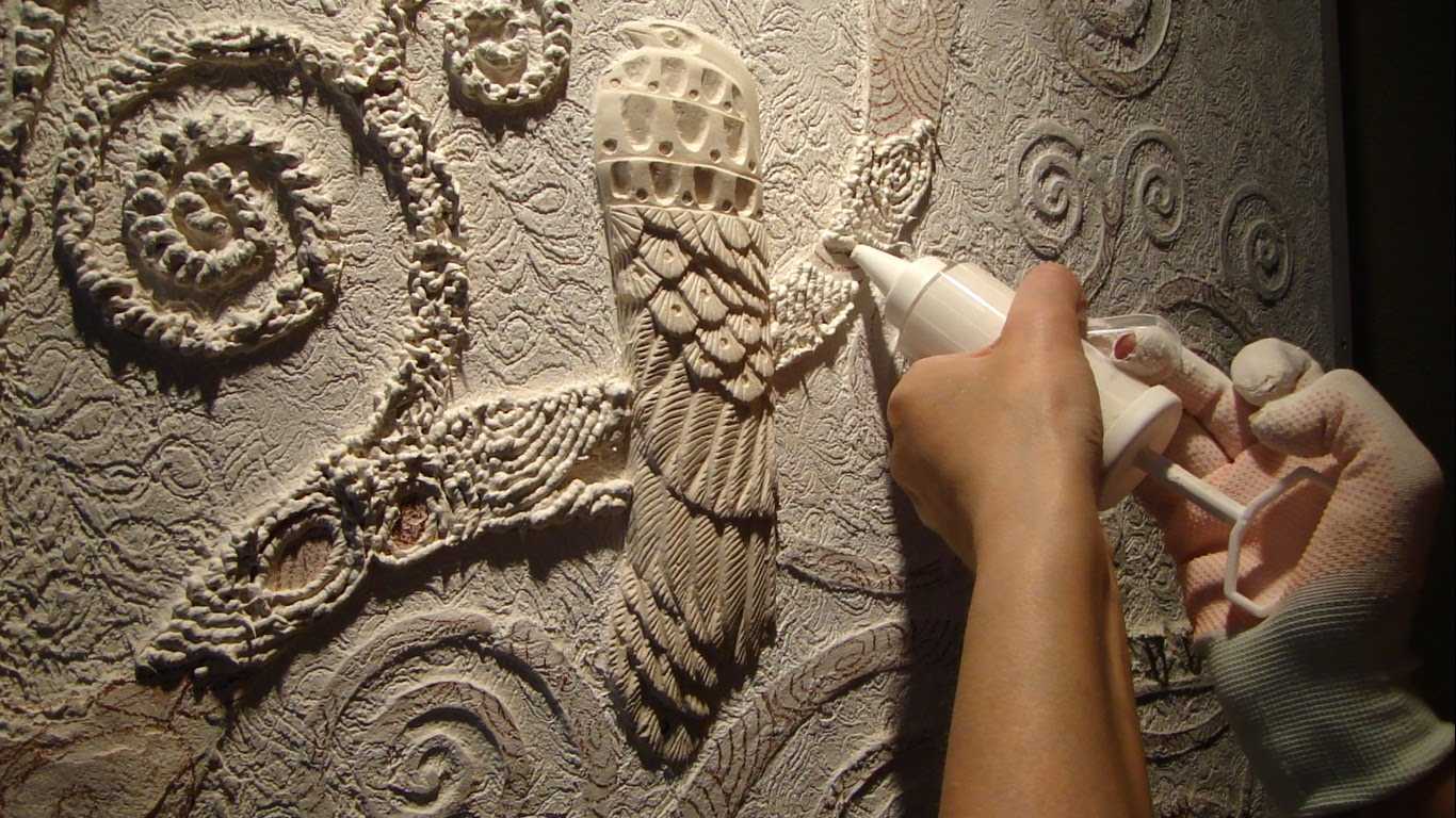 Создание самого рельефа потребует терпения и аккуратности. Большое значение имеет используемый в работе материал. Для получения хороших результатов лучше всего использовать финишные штукатурки на гипсовой основе или декоративные смеси с очень мелкой фракцией наполнителя. Они хорошо поддаются шлифовке, пластичны и обладают однородной структурой, что позволяет выполнить даже мелкие детали.