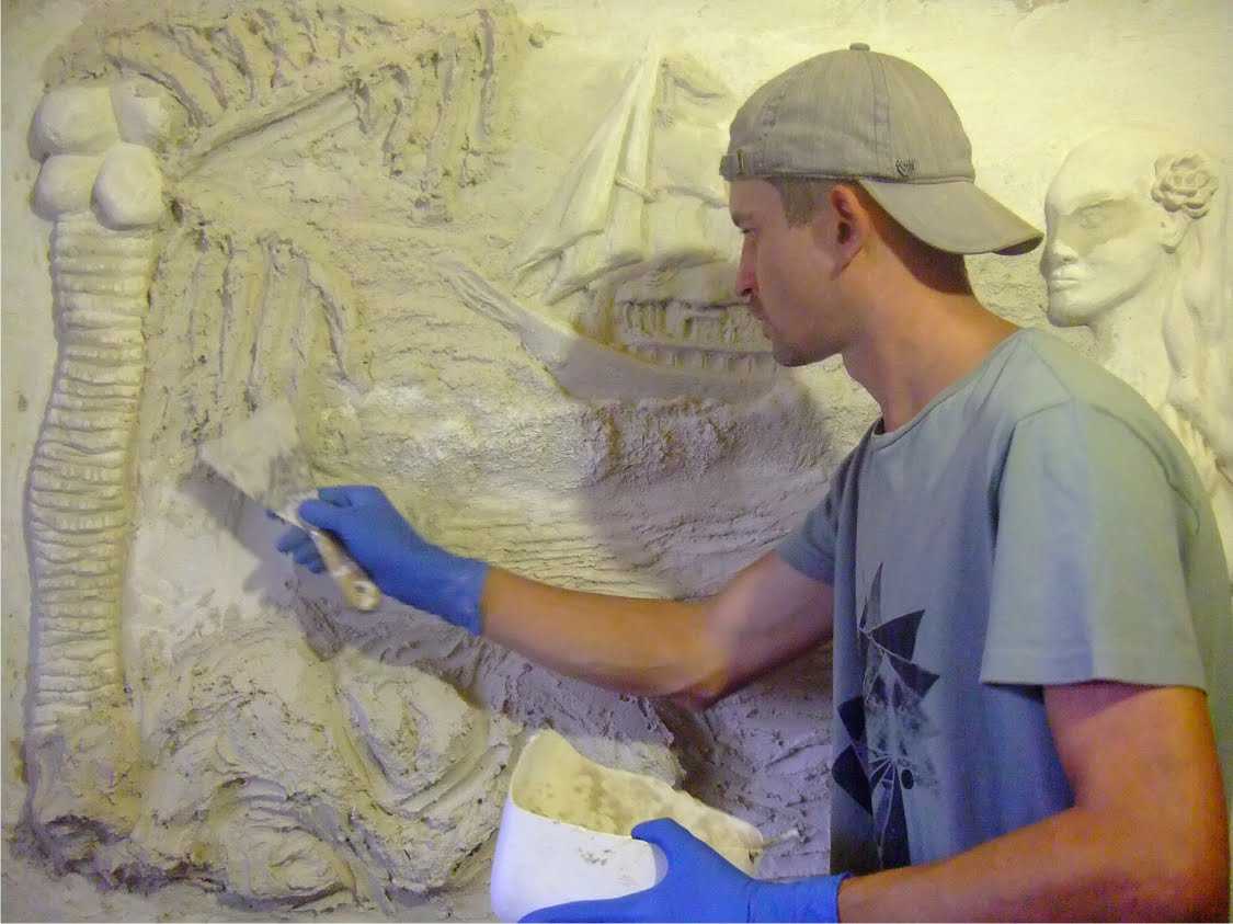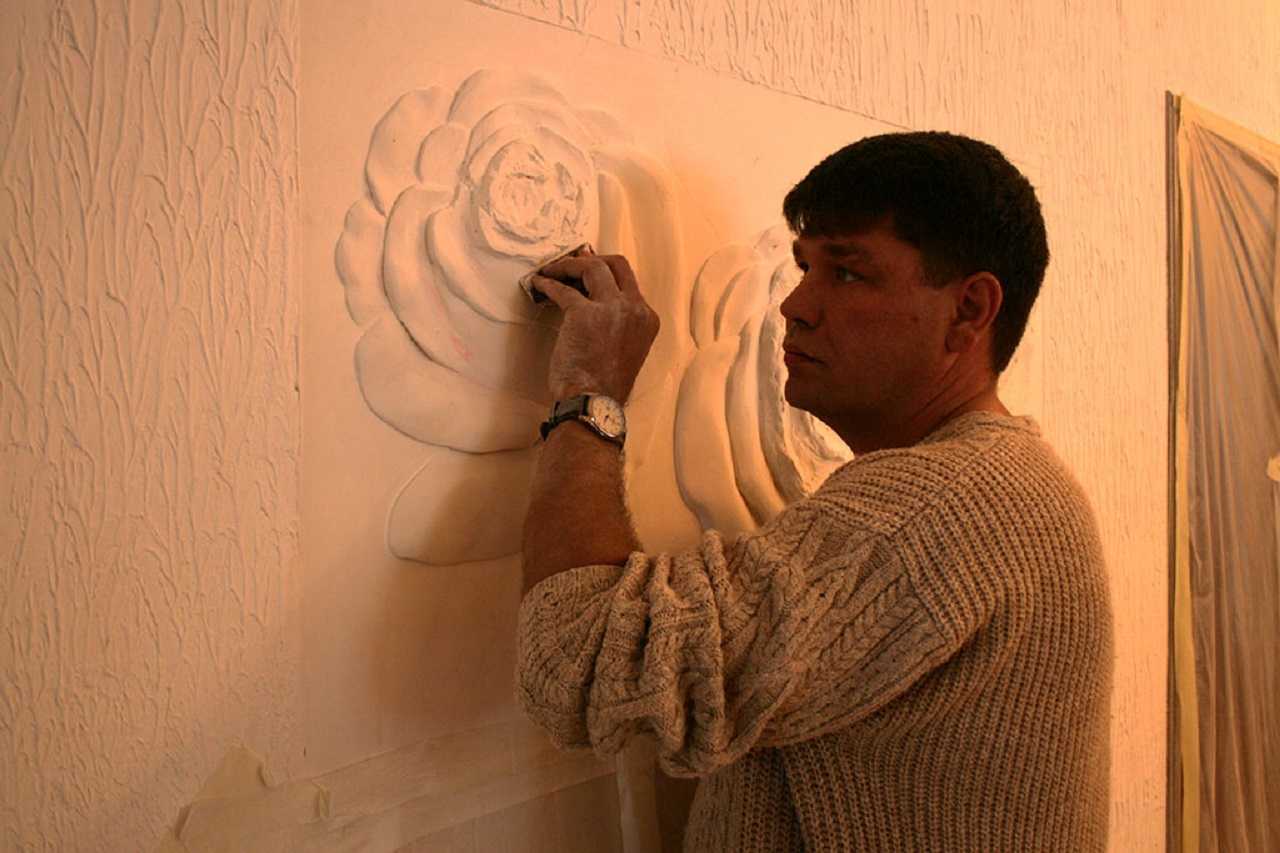 Другой способ сложнее, но гораздо интереснее, так как требует проявления творческих способностей. Для выполнения отделки нужно иметь минимальные навыки работы с пластичными материалами (на уровне школьных уроков лепки), пространственное воображение и умение рисовать. При желании можно воспользоваться готовыми рисунками или орнаментом, перенеся их на стену с помощью проектора или увеличивая по клеткам.