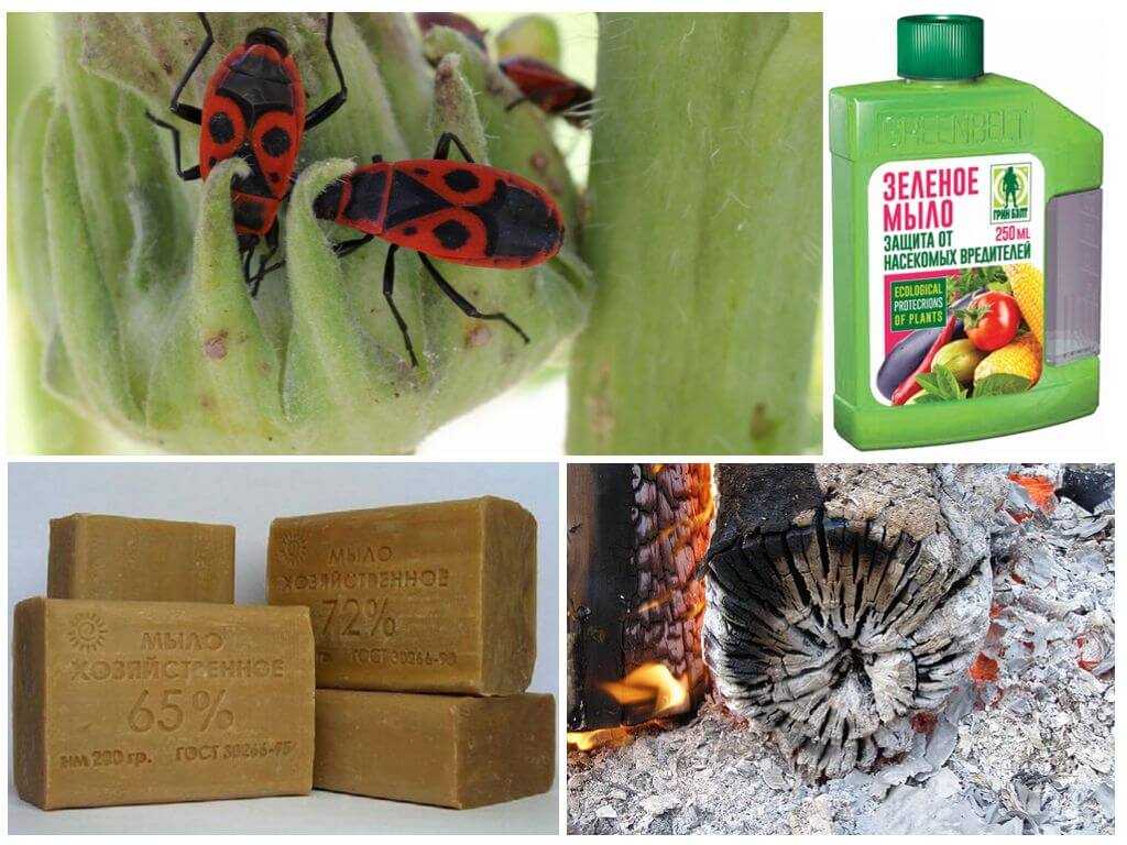 Поливают растение, уделяя особое внимание обратной стороне листочков. Зола не убивает бескрылых красноклопов, но активно отпугивает