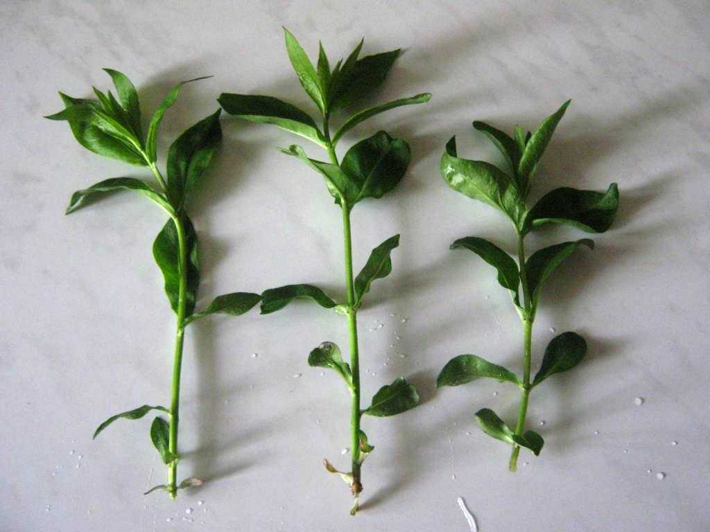 С материнского растения срезают побег и ставят в воду на час. Нижние листья удаляют и прикапывают в грунт на глубину около 2 см, не больше. Саженец укореняют в притененном месте и поливают. Через 2 недели на побеге образуются корни.