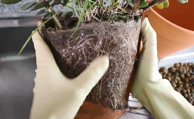 Пошаговый процесс пересадки взрослого растения Crassula ovata: