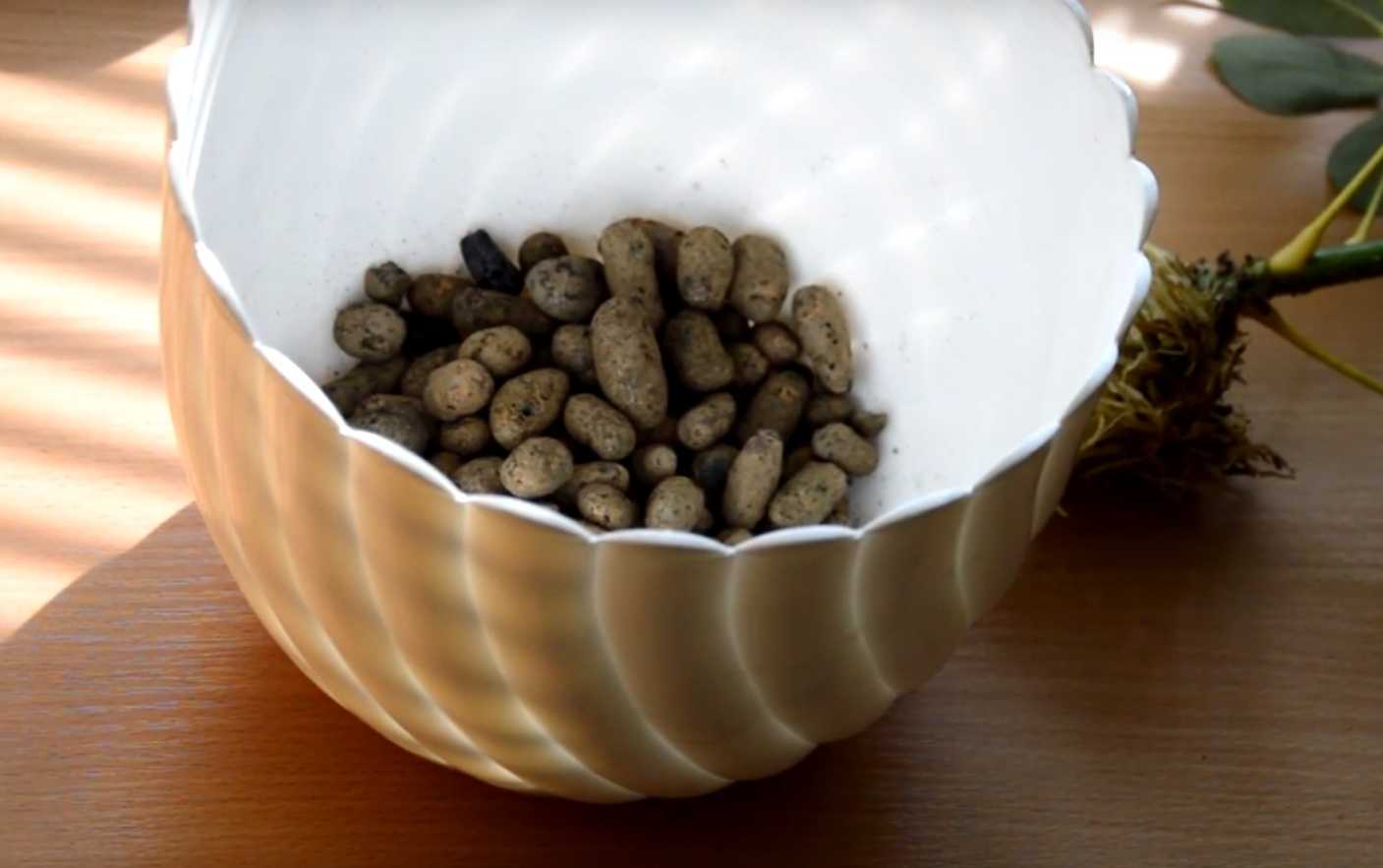 - Возьмите вазон диаметром 100 мм, поместите на его дно дренаж, заполните землей и отправьте в то же место, где находится укореняющийся лист.