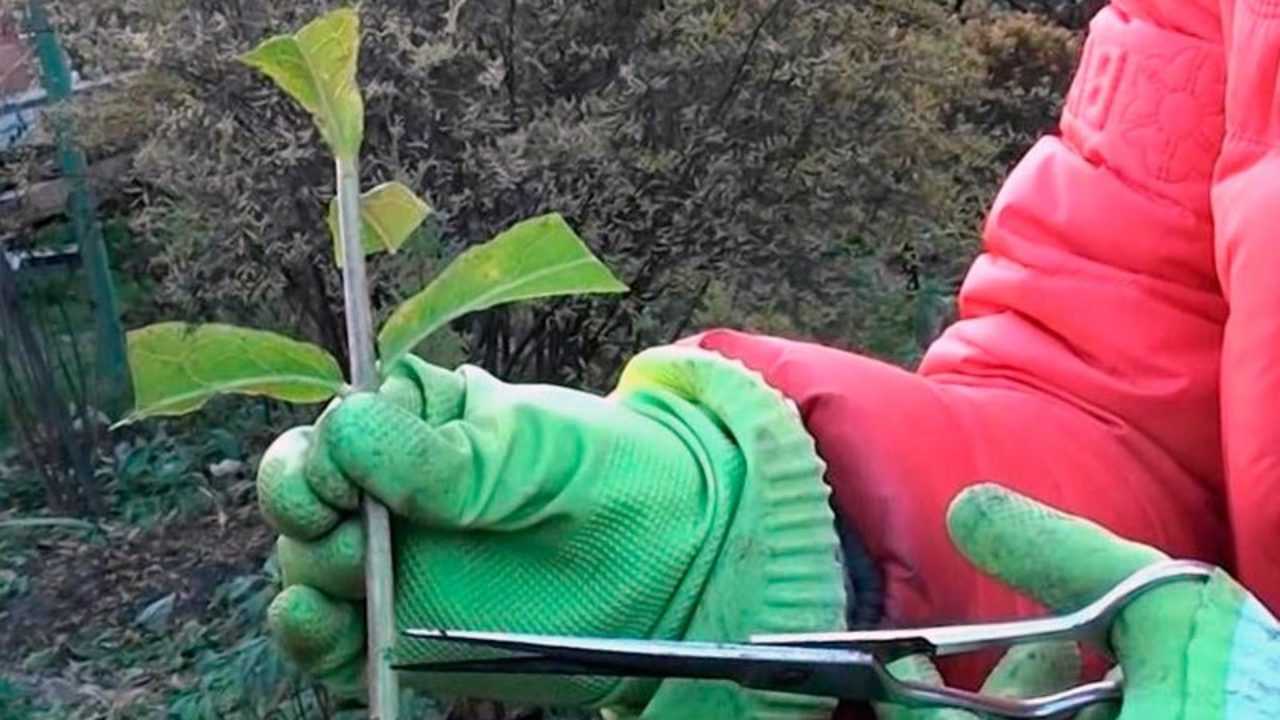 На черенке, который вы выберете для размножения, должно быть не менее трех узлов. Нижний срез делают под первым, узлом, перпендикулярно оси черенка. Листья, если они еще не опали, обрезают ножницами. Верхний срез делают примерно в 2 см от третьего узла. Нижние листья нужно полностью удалить, оставив только черешки. А самые верхние – укоротить наполовину.