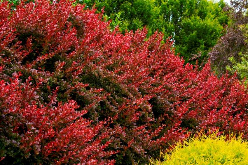 Барбарис — яркое и неприхотливое растение, поэтому многие предпочитают использовать именно его для формирования живой изгороди.