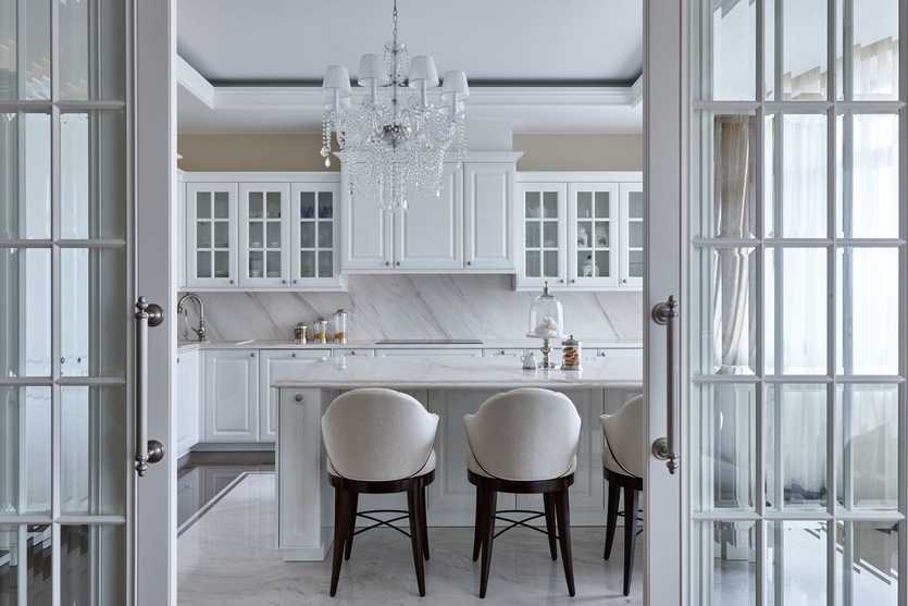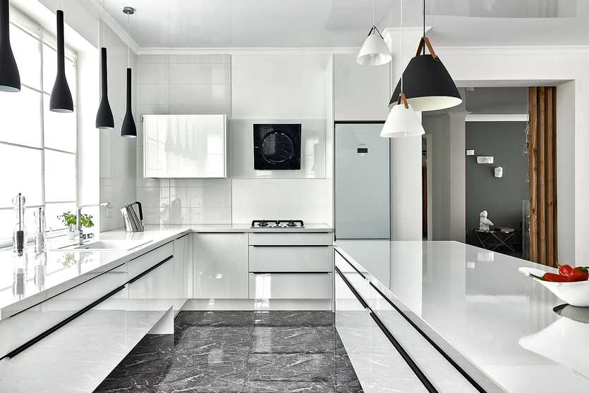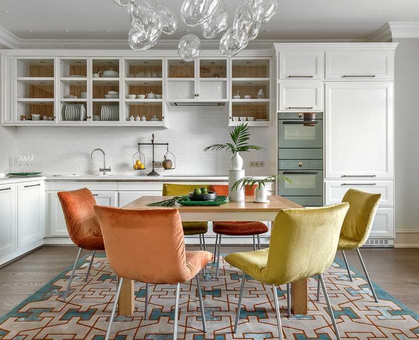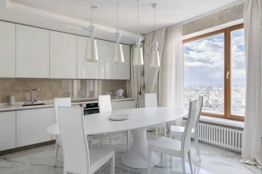 Сочетание белого цвета в интерьере кухни возможно практически с любым цветом спектра.