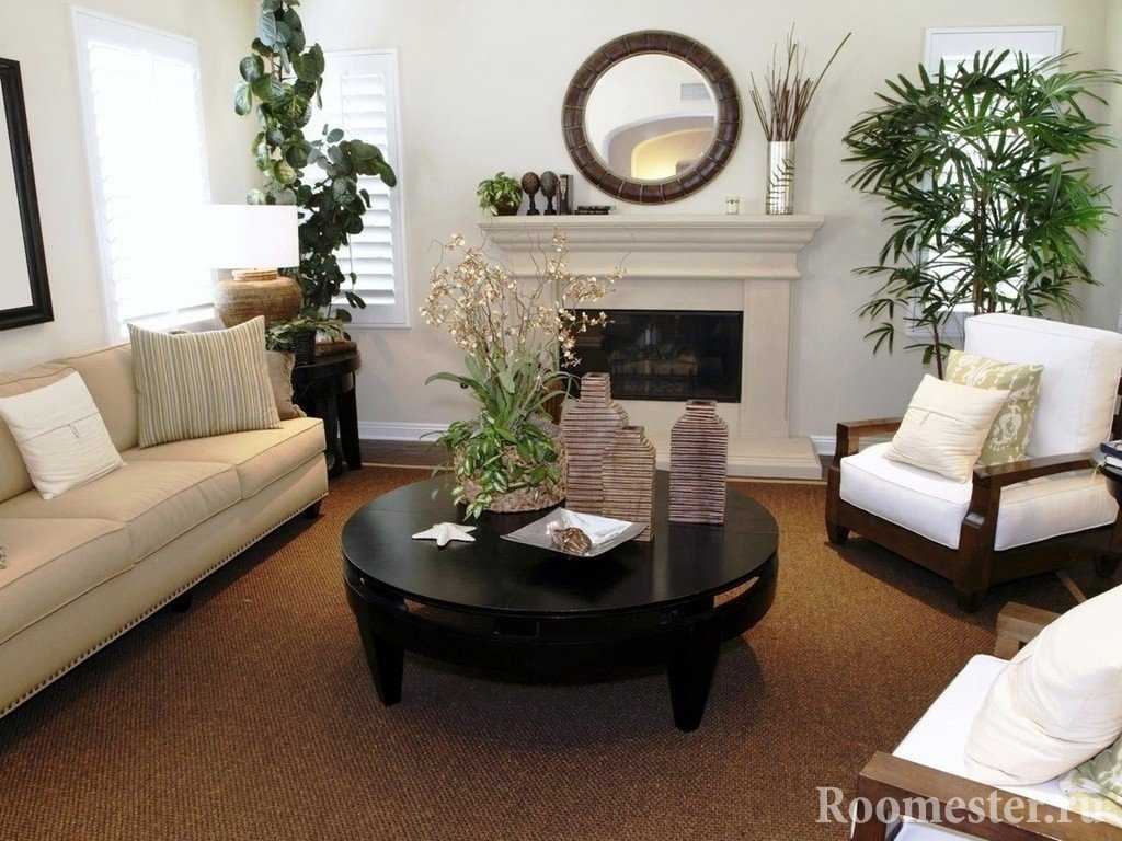 Комната, выполненная в спокойной цветовой гамме, будет более практичной и удобной, обеспечивая легкий уход и комфортное пребывание в одном помещении всех домочадцев, а также гостей. Правильное сочетание цвета стен и гарнитура позволяет добиться желаемого результата.