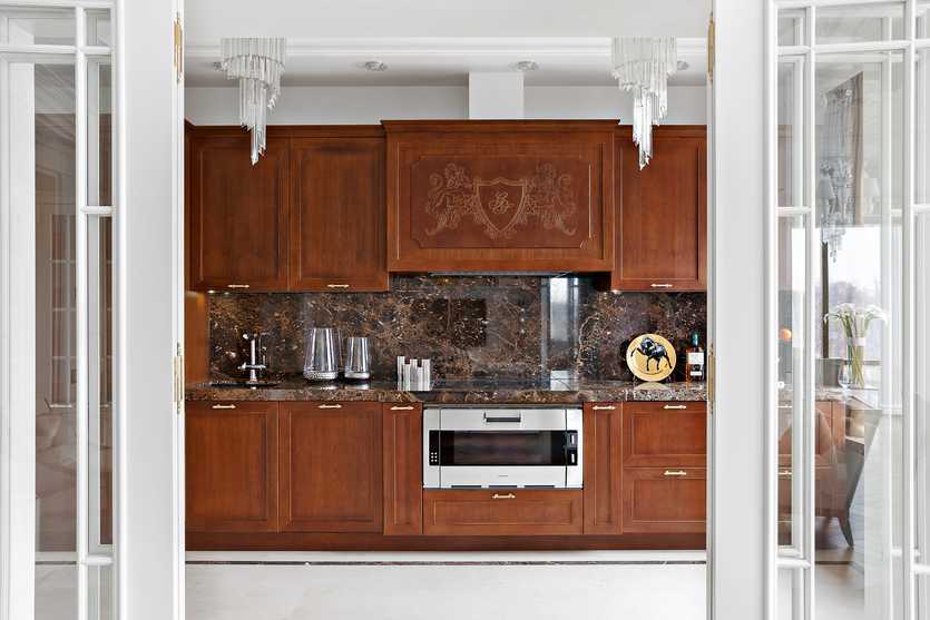 Кроме того, для оформления кухонного пространства остаются крайне актуальными и хорошо дополняют любую палитру все тона дерева и цветные металлы.