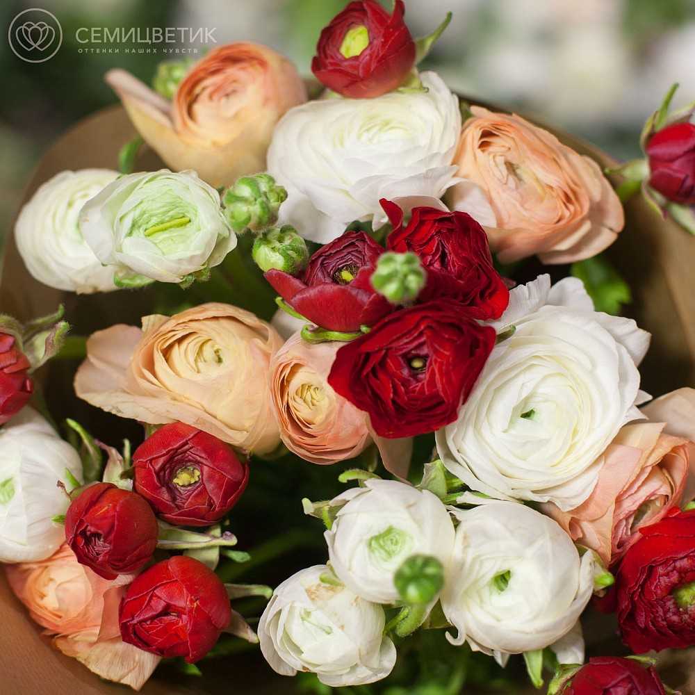 Распустившиеся ранункулюсы в диаметре равны примерно 6 см. С одной стороны, это немного в сравнении с 10-12 см у пионовых, но они дешевле. Купите их несколько десятков, и получится огромная охапка. Для девушки это может стать действительно оригинальным и необычным подарком. По наблюдениям флористов Семицветика, мужчины часто дарят привычные цветы, лютики для них — экзотика, которую они недооценивают.