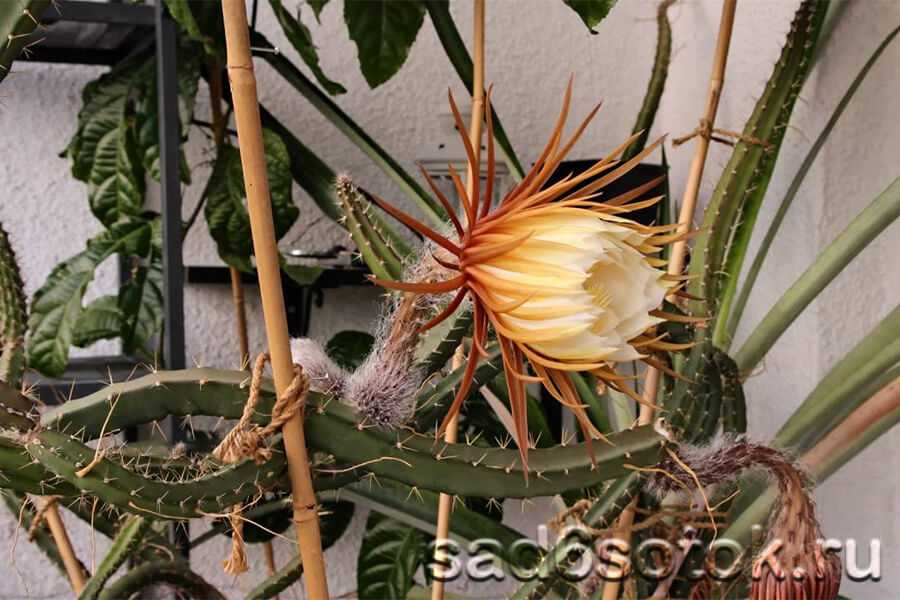 Великолепные цветки распускаются вечером и до рассвета увядают. За это селеницереус прозвали «царицей ночи», «лунным кактусом».