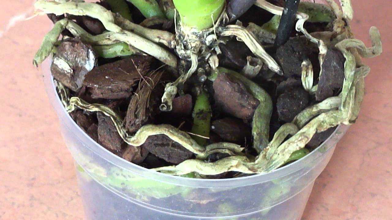Даже если растение на первый взгляд выглядит здоровым, это не показатель, что с корневой системой все в порядке. Благодаря тому, что в основном орхидеи высаживают в прозрачные горшки, наблюдать состояние корней не сложно.