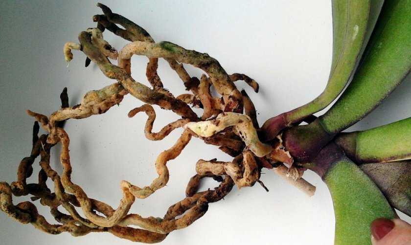 А места срезов обрабатывают антисептиком. Здоровые корни имеют зеленый или серо-зеленый цвет. Они плотные и упругие на ощупь. Если корни черные, коричневые, мягкие, покрыты пятнами, их обязательно нужно удалить. Затем следует внимательно осмотреть.
