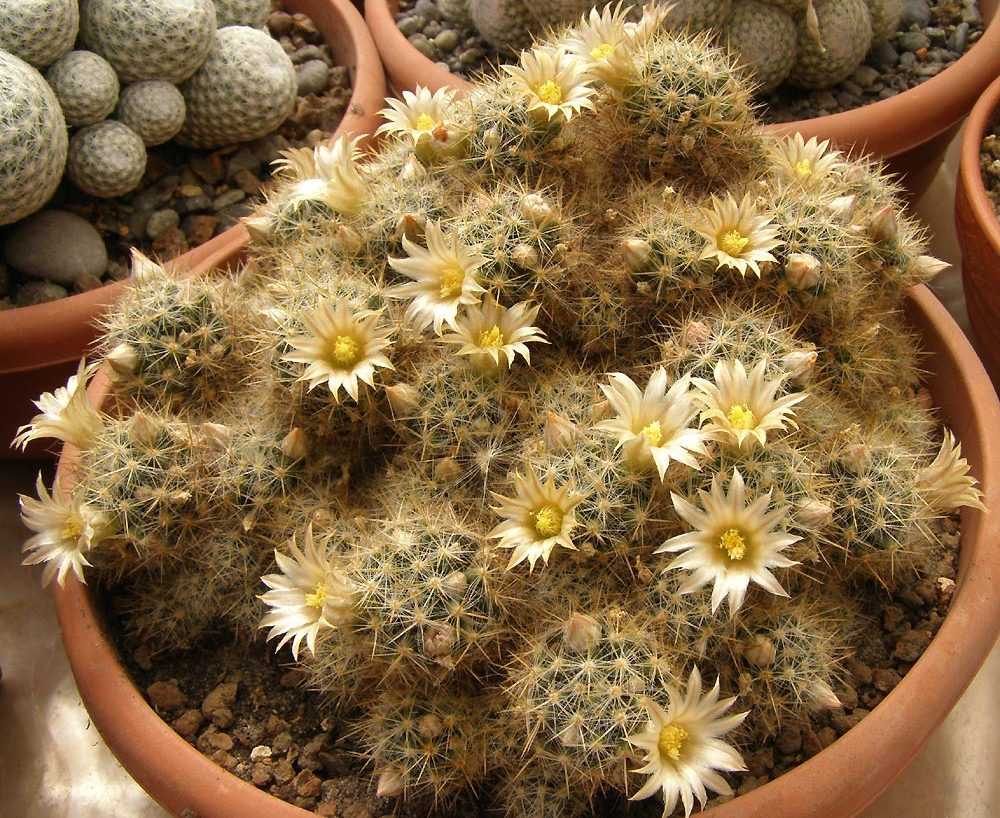 Тем разновидностям кактуса, корни которых растут в длину, необходим глубокий горшок. При выборе емкости учитывайте также характер размножения растений. Такие виды, как маммилярии (самый большой сорт) образуют большое количество «деток», поэтому в горшочке появляется много маленьких растений. В этих случаях необходимо использовать широкие горшки.
